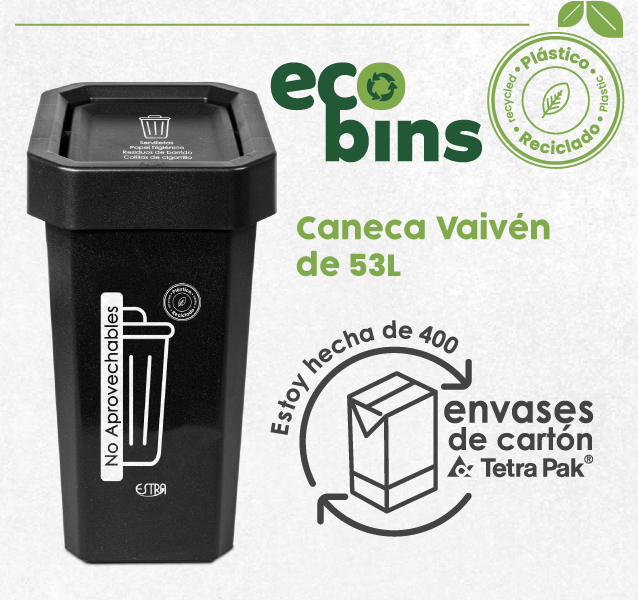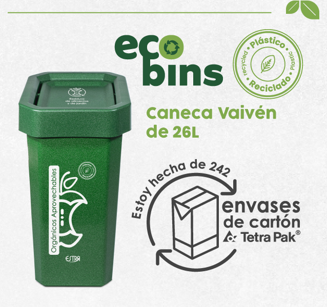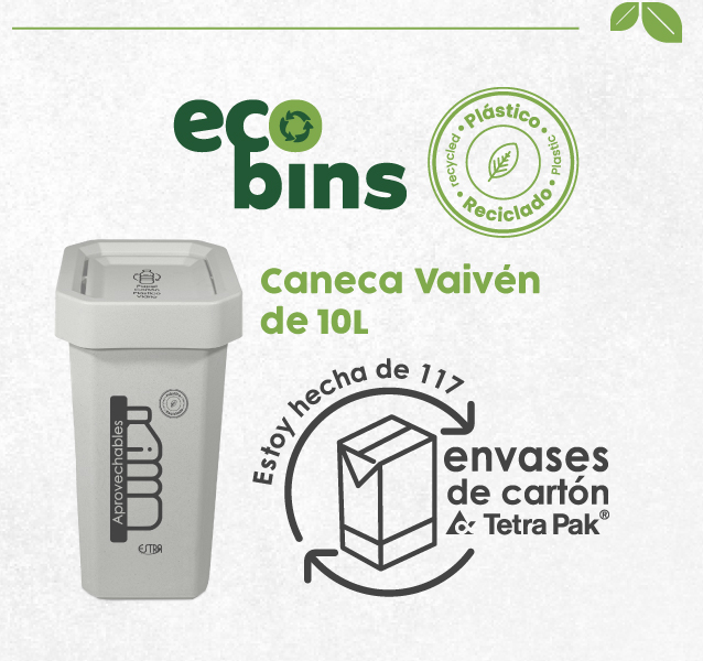 Conoce la nueva caneca Ecobins que está fabricada con envases reciclados de Tetra Pak, con un hermoso diseño y textura.