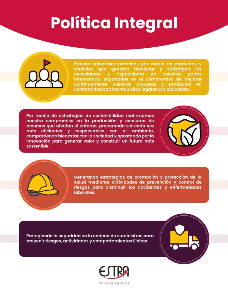 Aumentar la satisfacción de nuestros Clientes mediante productos y servicios de excelente calidad, que reflejan el compromiso que tiene INDUSTRIAS ESTRAS.A de mejorar continuamente su Sistema de Gestión de Calidad, sus procesos y sus productos.